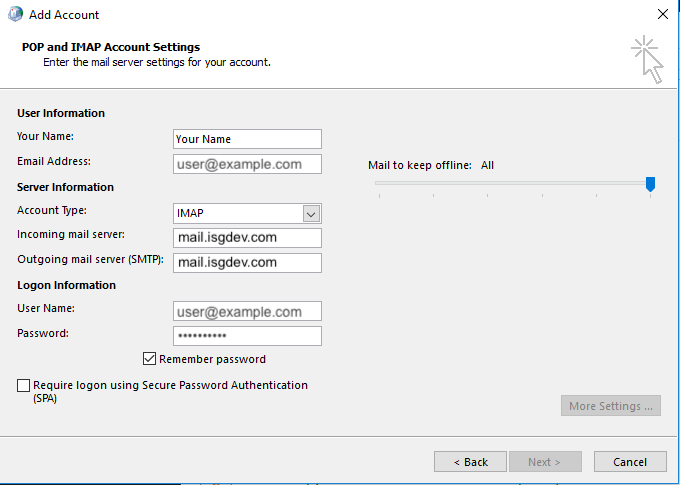 - Incoming Mail Server — Enter mail.isgdev.com